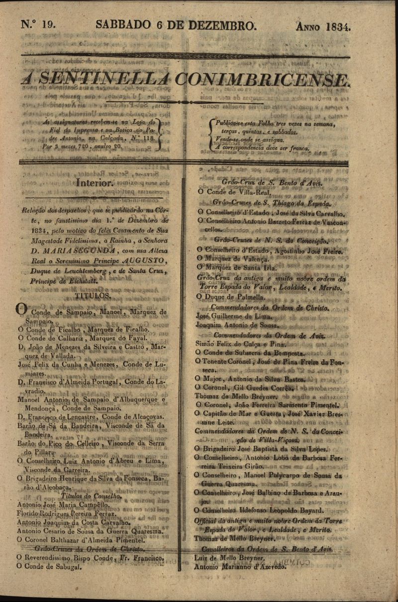 A sentinella conimbricense Nº19