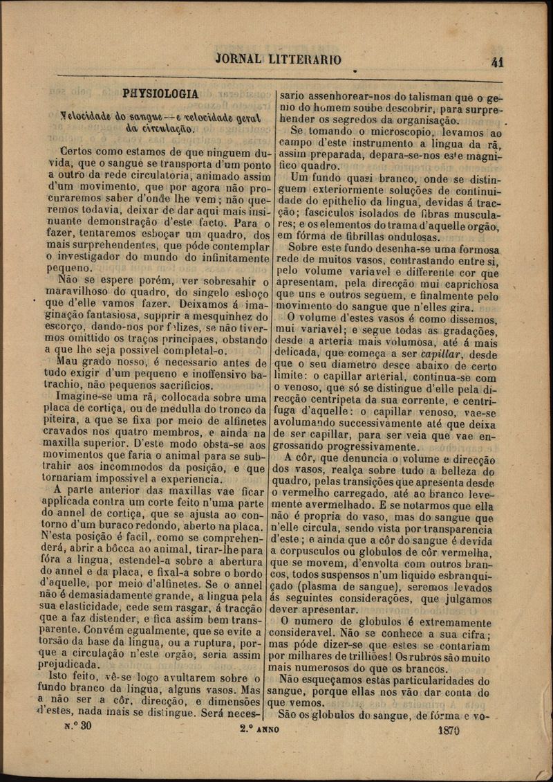 Jornal litterario : periódico quinzenal destinado a artigos de litteratura e sciencias – Nº30