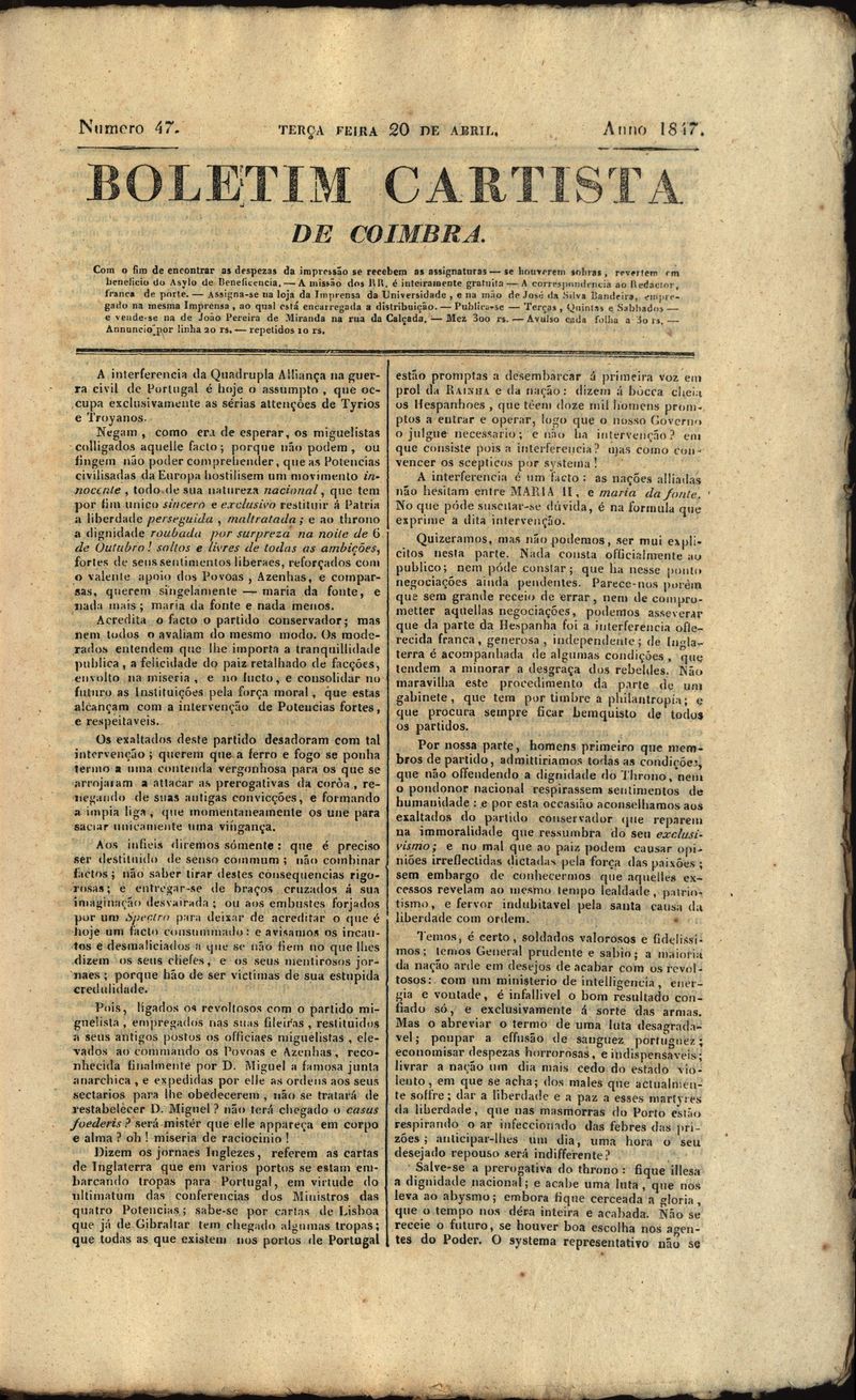 Boletim cartista de Coimbra Nº47