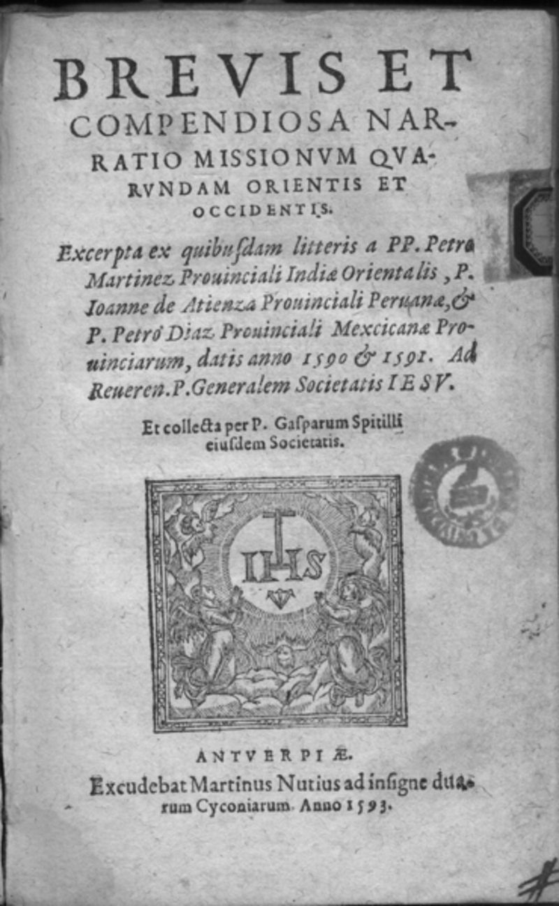 Brevis et compendiosa narratio missionum quarundam Orientis et Occidentis... : excerpta ex quibusdam litteris a PP. Petro Martinez... Ioanne de Atienza... et Petro Diaz..