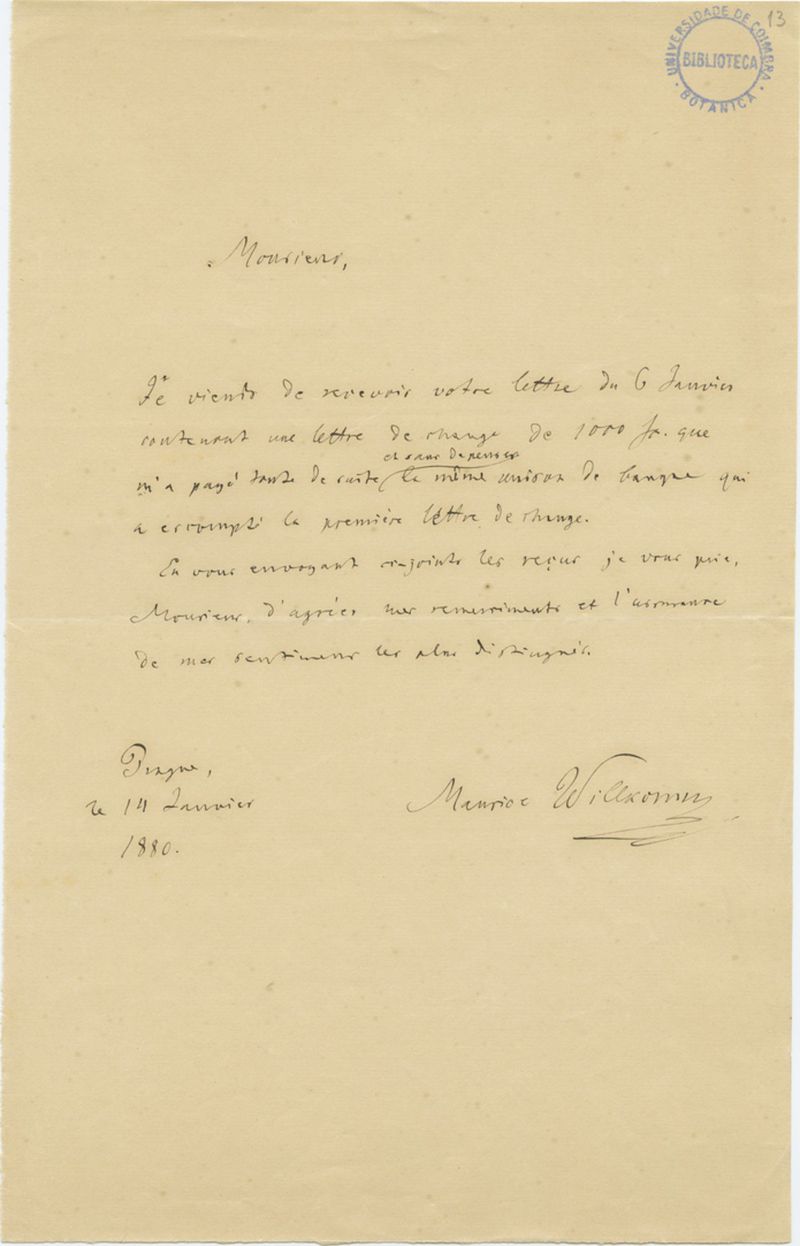 [Lettre], 1880 jan. 14, Prague, [a Júlio Henriques, Coimbra]