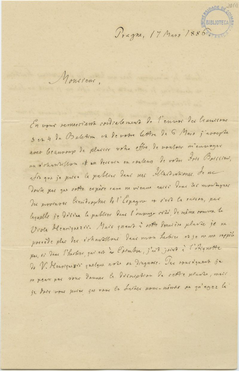 [Lettre], 1886 mars 17, Prague, [a Júlio Henriques, Coimbra]