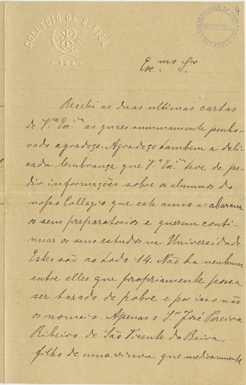 [Carta], 1900 Ago. 17, Collegio de S. Fiel, [a Júlio Henriques, Coimbra]