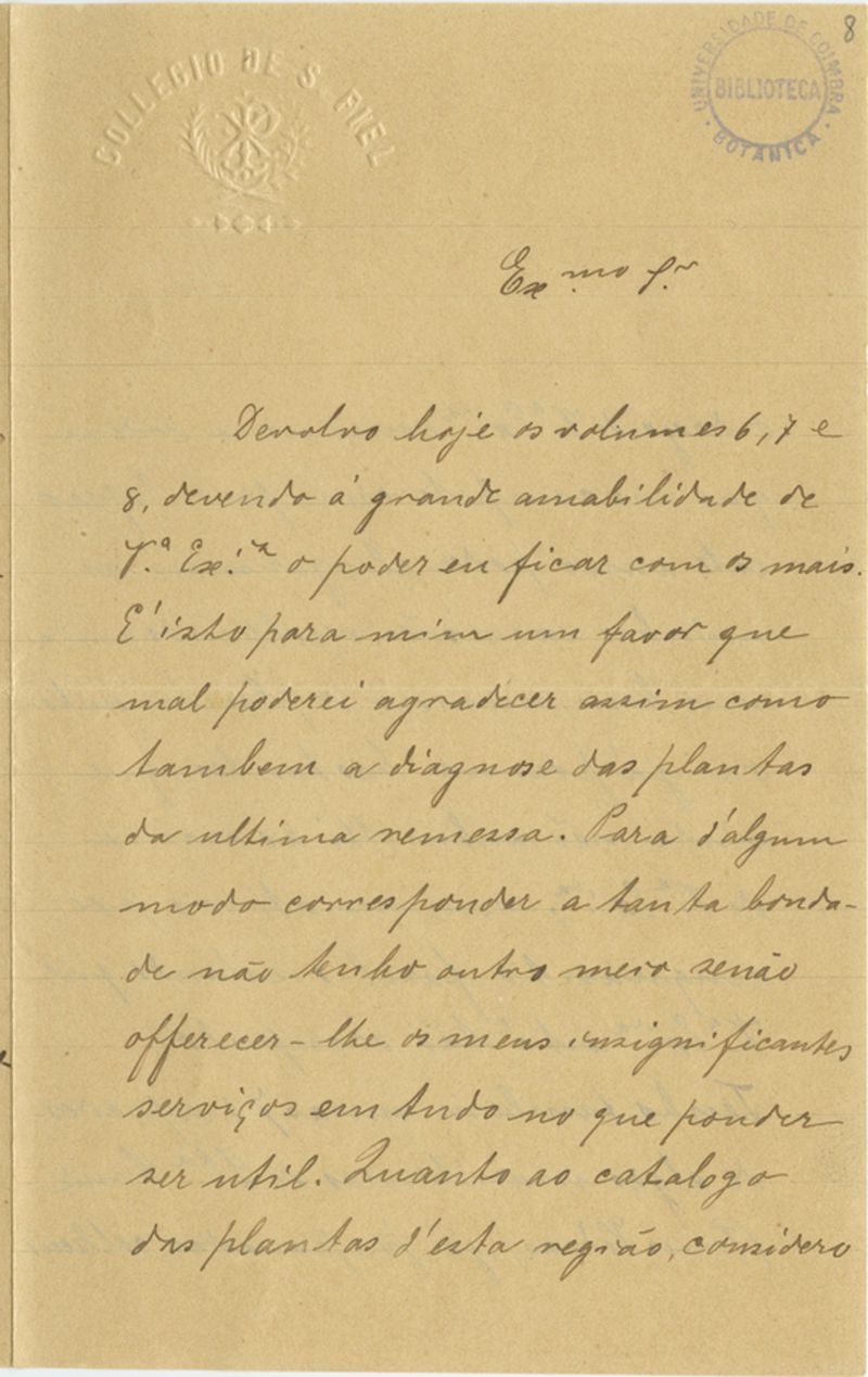 [Carta], 1901 Jan. 15, Collegio de S. Fiel, [a Júlio Henriques, Coimbra]