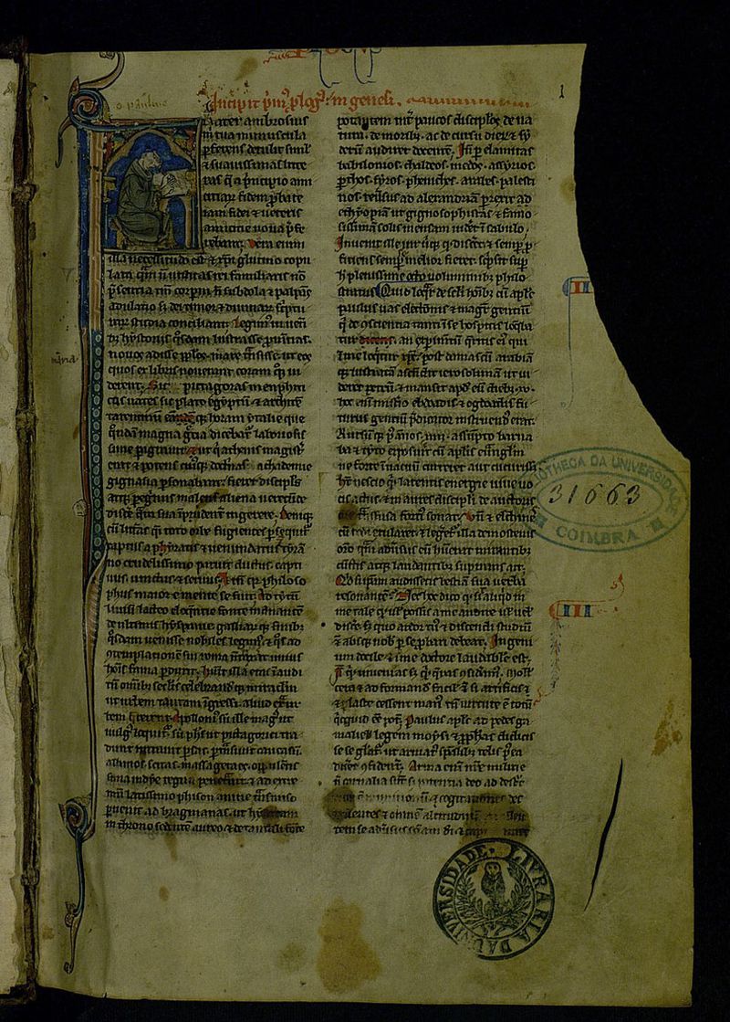 Referenciado em: Saul Gomes, "Manuscritos medievais iluminados e fragmentos", in Tesouros da Biblioteca Geral da Universidade..., Coimbra, 2011, p. 49-51.