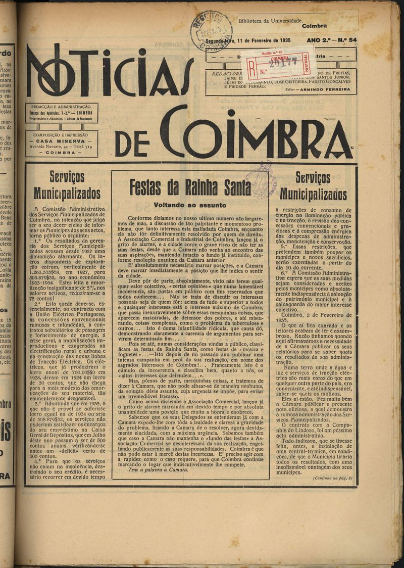 Notícias de Coimbra : semanário noticioso, literário e de crítica