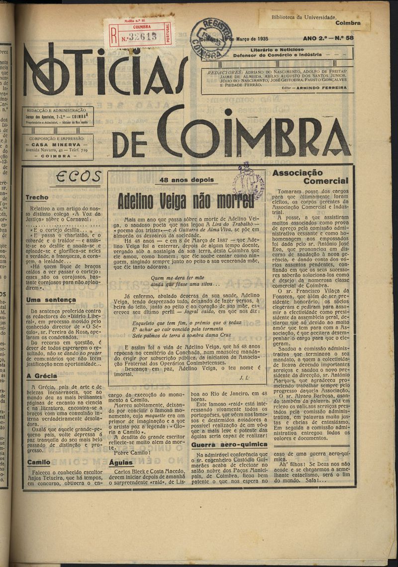 Notícias de Coimbra : semanário noticioso, literário e de crítica