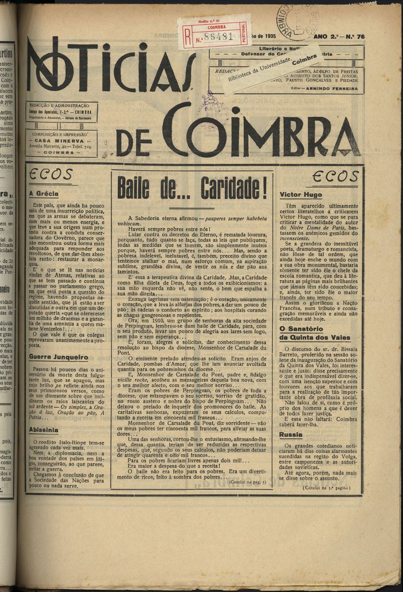 Notícias de Coimbra : semanário noticioso, literário e de crítica