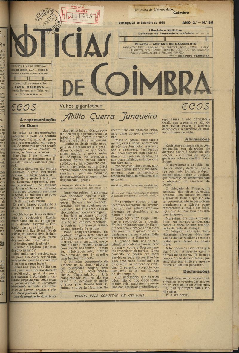 Notícias de Coimbra : semanário noticioso, literário e de crítica