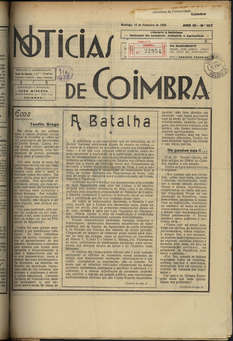 Notícias de Coimbra : semanário noticioso, literário e de crítica