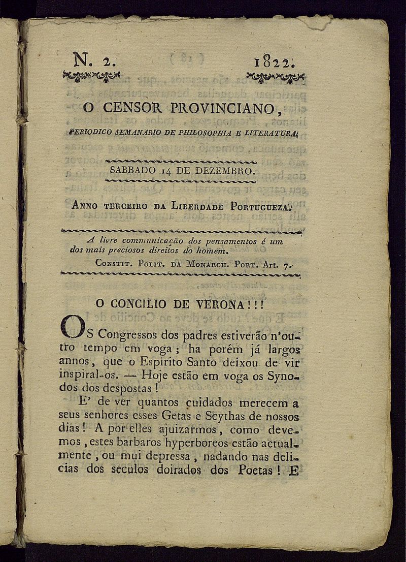 Censor provinciano : periodico semanario de philosophia, politica e literatura - Nº 2