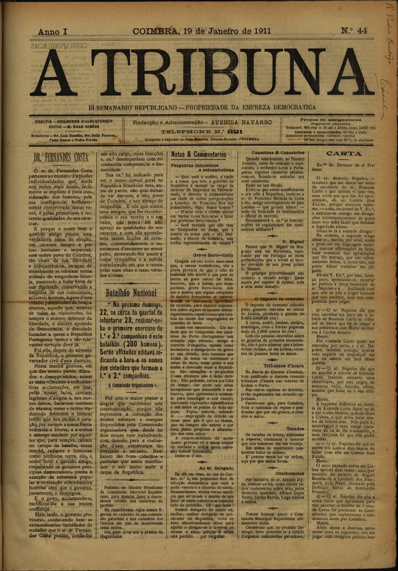A tribuna : semanário republicano que se publica às quartas-feiras - Nº44