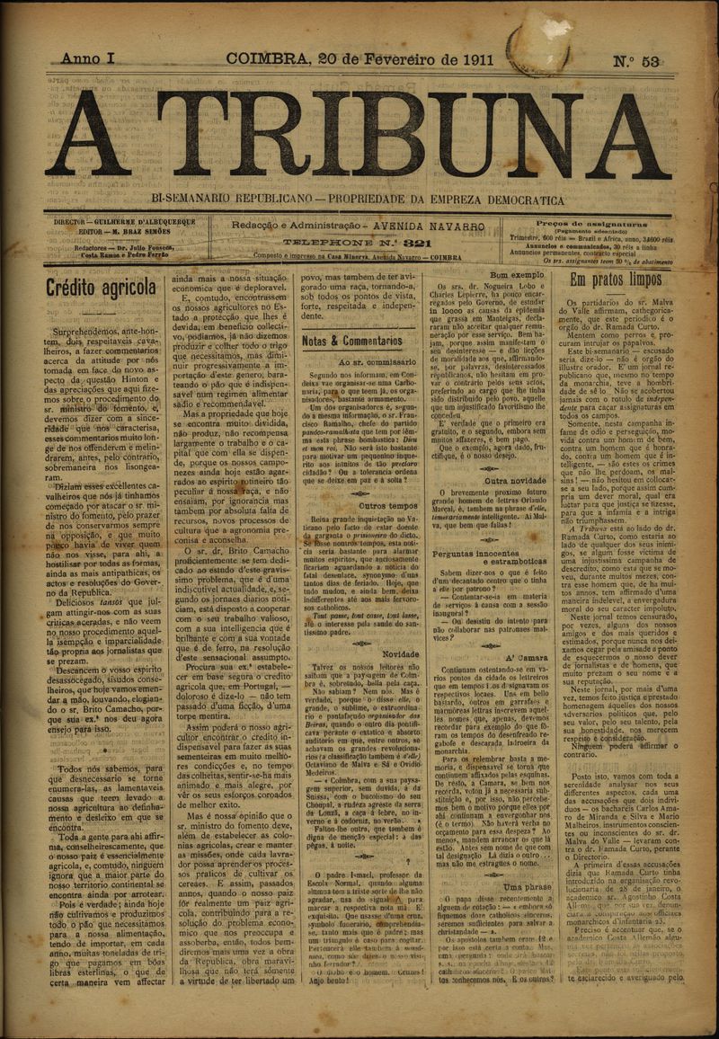 A tribuna : semanário republicano que se publica às quartas-feiras - Nº53