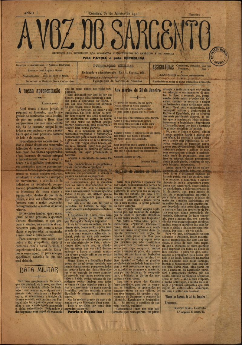 A voz do sargento : defensor dos interesses dos sargentos e equiparados do exército e armada - Nº1
