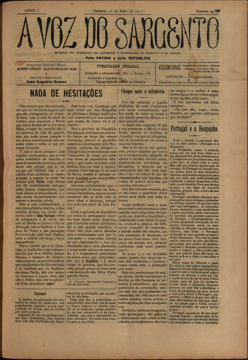 A voz do sargento : defensor dos interesses dos sargentos e equiparados do exército e armada - Nº24