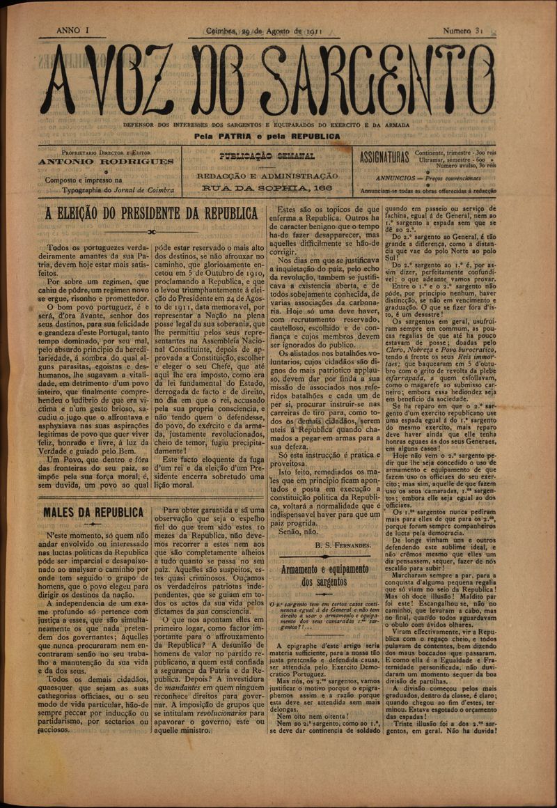 A voz do sargento : defensor dos interesses dos sargentos e equiparados do exército e armada - Nº31