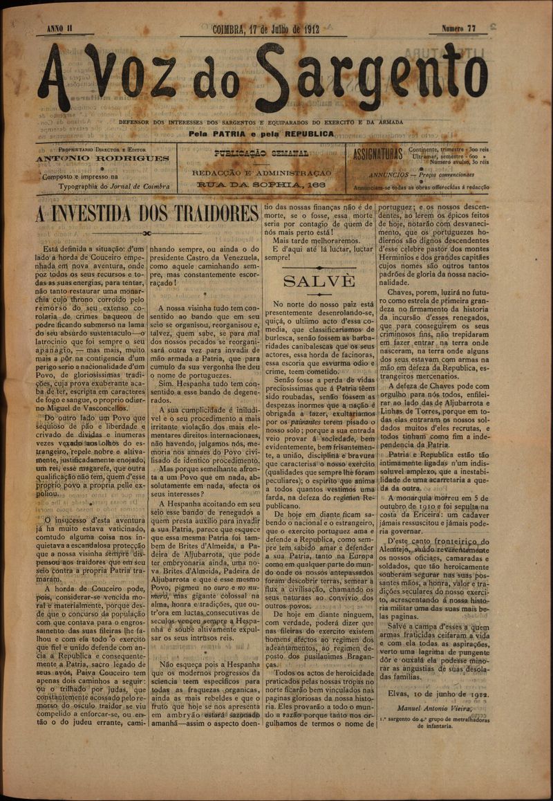A voz do sargento : defensor dos interesses dos sargentos e equiparados do exército e armada - Nº77