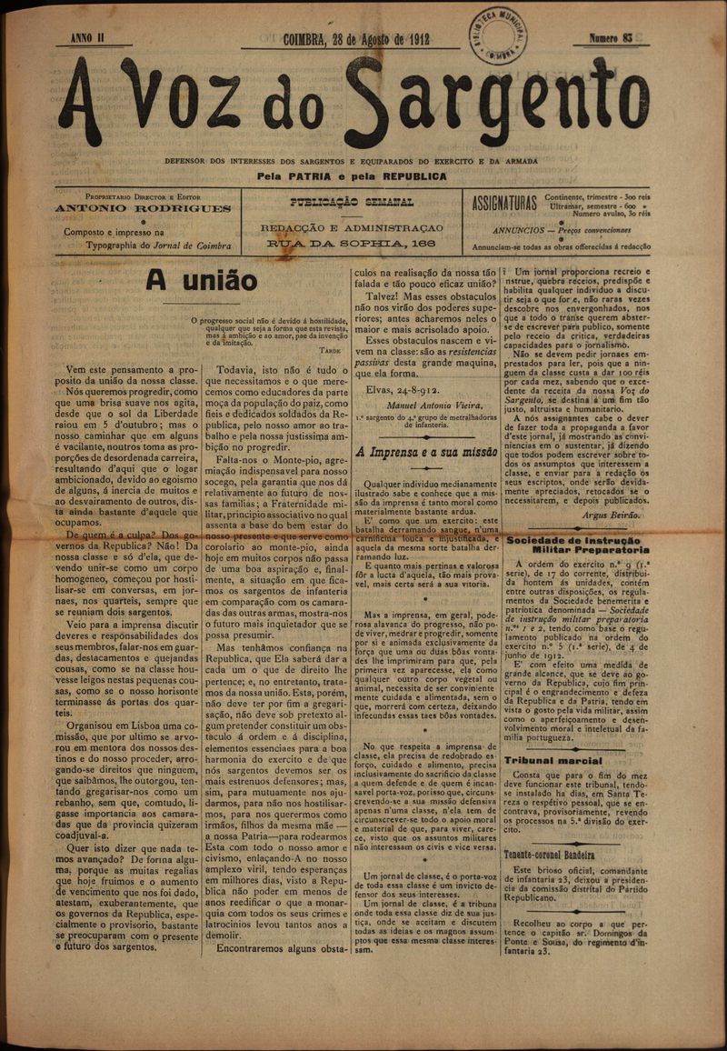 A voz do sargento : defensor dos interesses dos sargentos e equiparados do exército e armada - Nº83