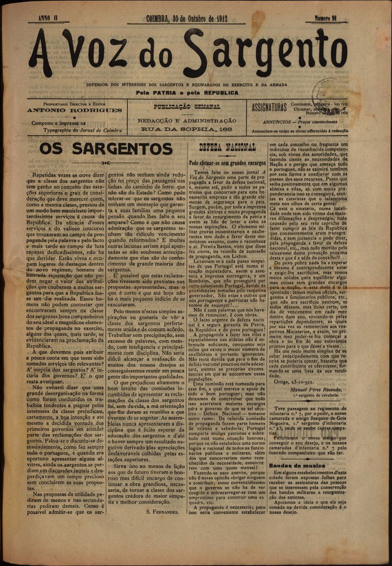 A voz do sargento : defensor dos interesses dos sargentos e equiparados do exército e armada - Nº91