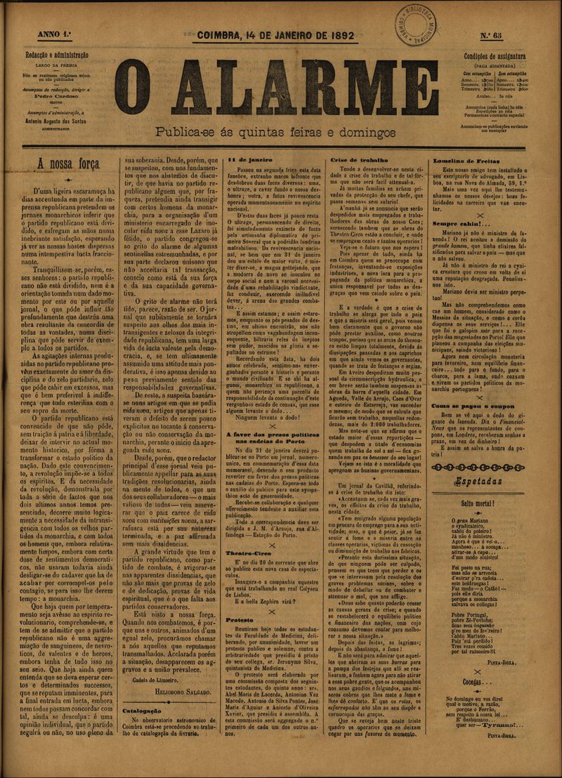 O alarme - 1892, Janeiro 14, quinta-feira - Nº65