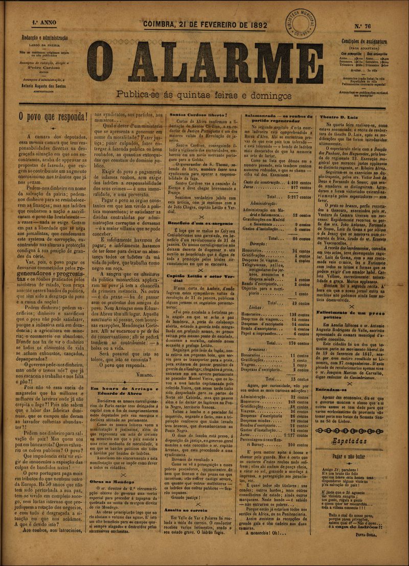 O alarme - 1892, Fevereiro 21, domingo - Nº76