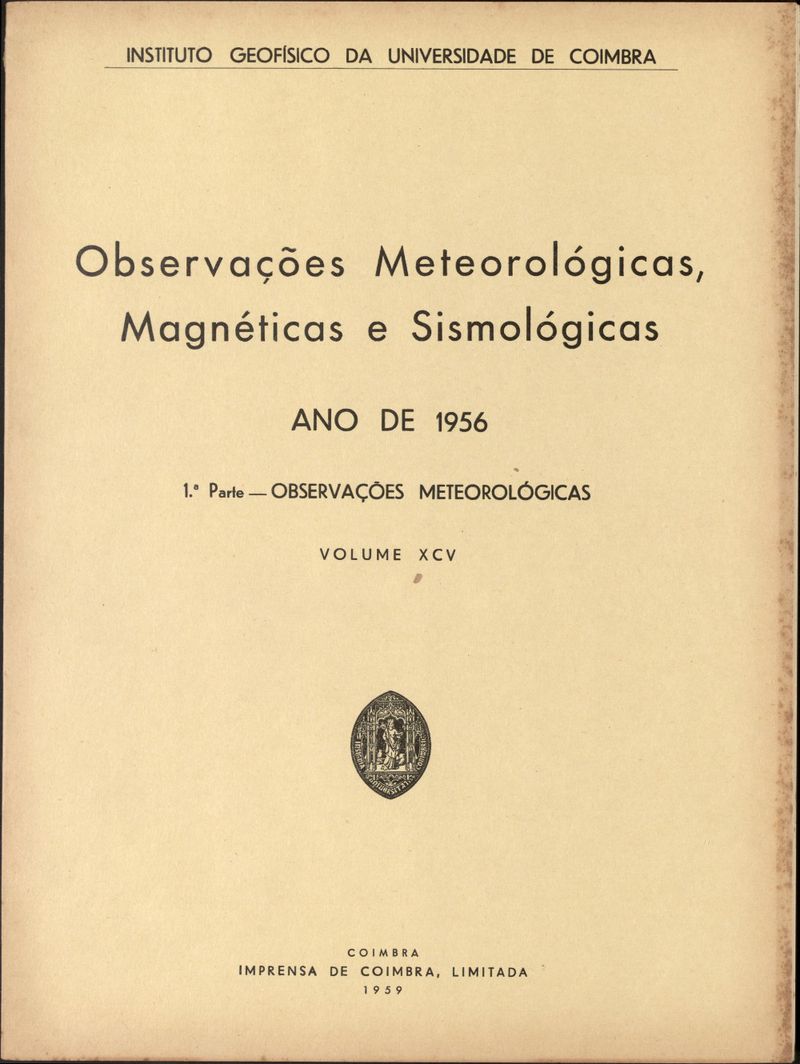 Observações meteorológicas, magnéticas e sismológicas feitas no Observatório Meteorológico e Magnético de Coimbra - 1956-1
