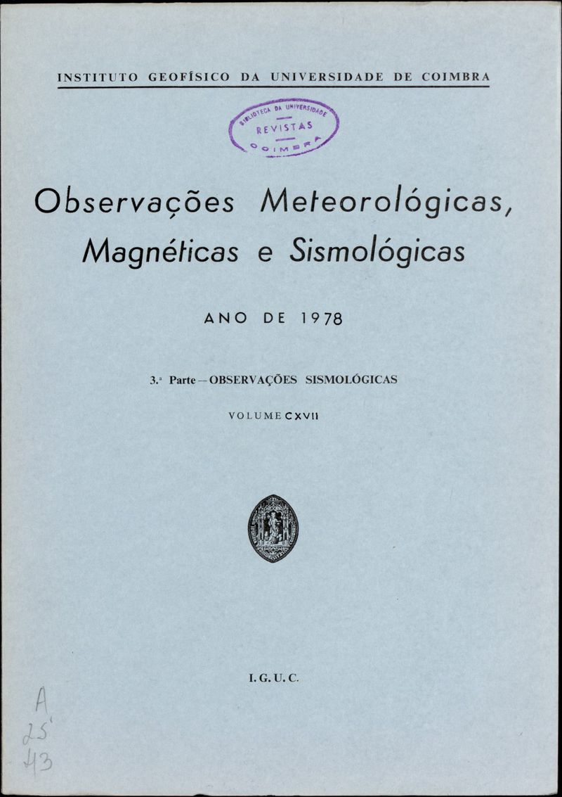 Observações meteorológicas, magnéticas e sismológicas feitas no Observatório Meteorológico e Magnético de Coimbra - 1978-3
