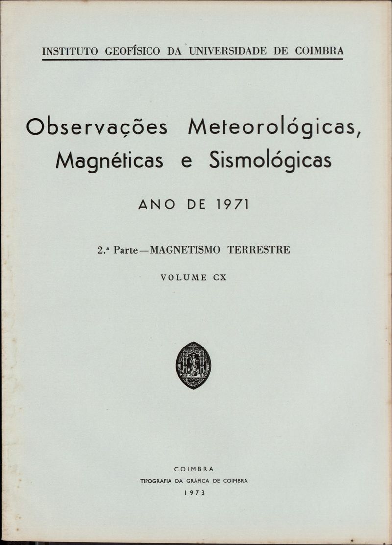Observações meteorológicas, magnéticas e sismológicas feitas no Observatório Meteorológico e Magnético de Coimbra - 1971-2