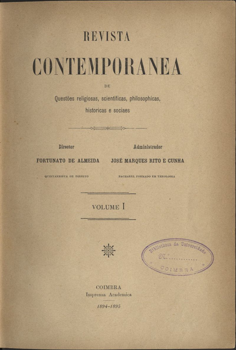 Revista contemporanea de questões religiosas, scientificas, philosophicas, historicas e sociaes – Vol. 1