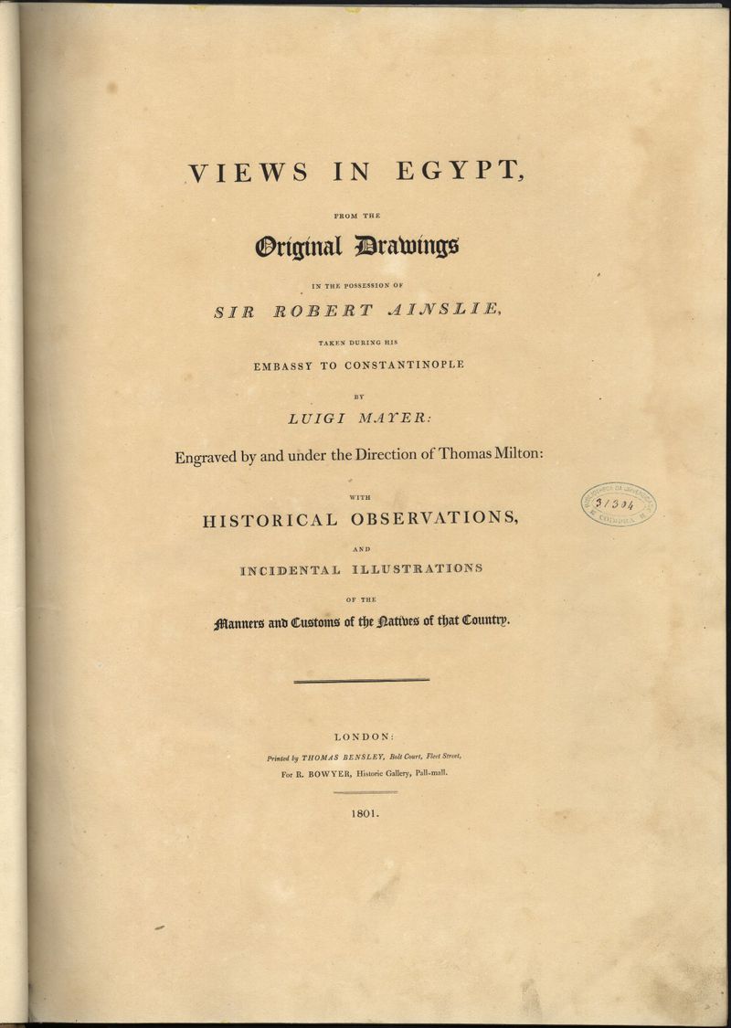 Views in Egypt, from the original drawings in the possession of Sir Robert Ainslie, taken during his embassy to Constantinople by Luigi Mayer
