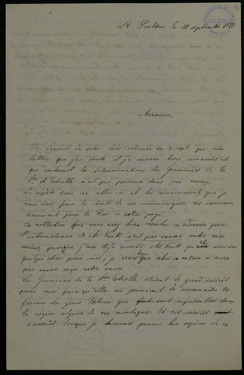 [Lettre], 1880 sept. 10, St. Poelten, [à] Monsieur [Júlio Henriques], Coimbra
