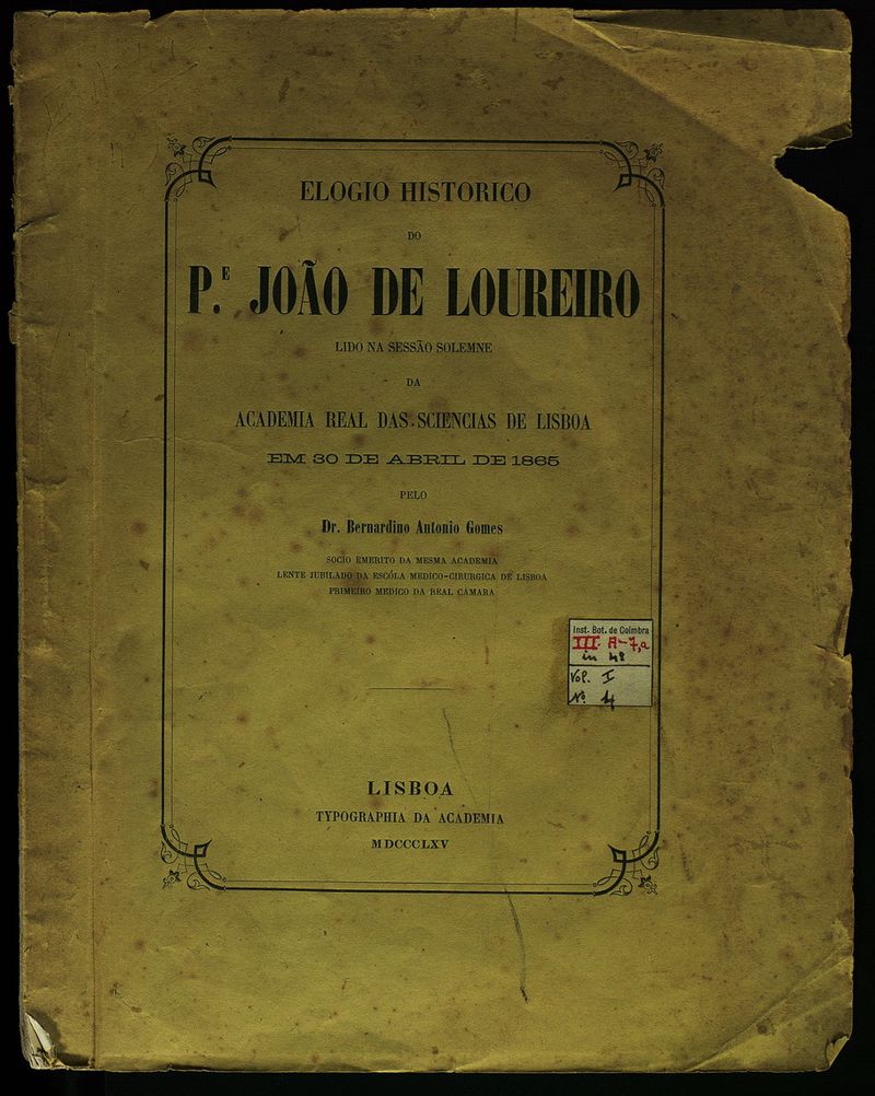 Elogio historico do Pe. João de Loureiro lido na sessão solemne da Academia Real das Sciencias de Lisboa em 30 de Abril de 1865