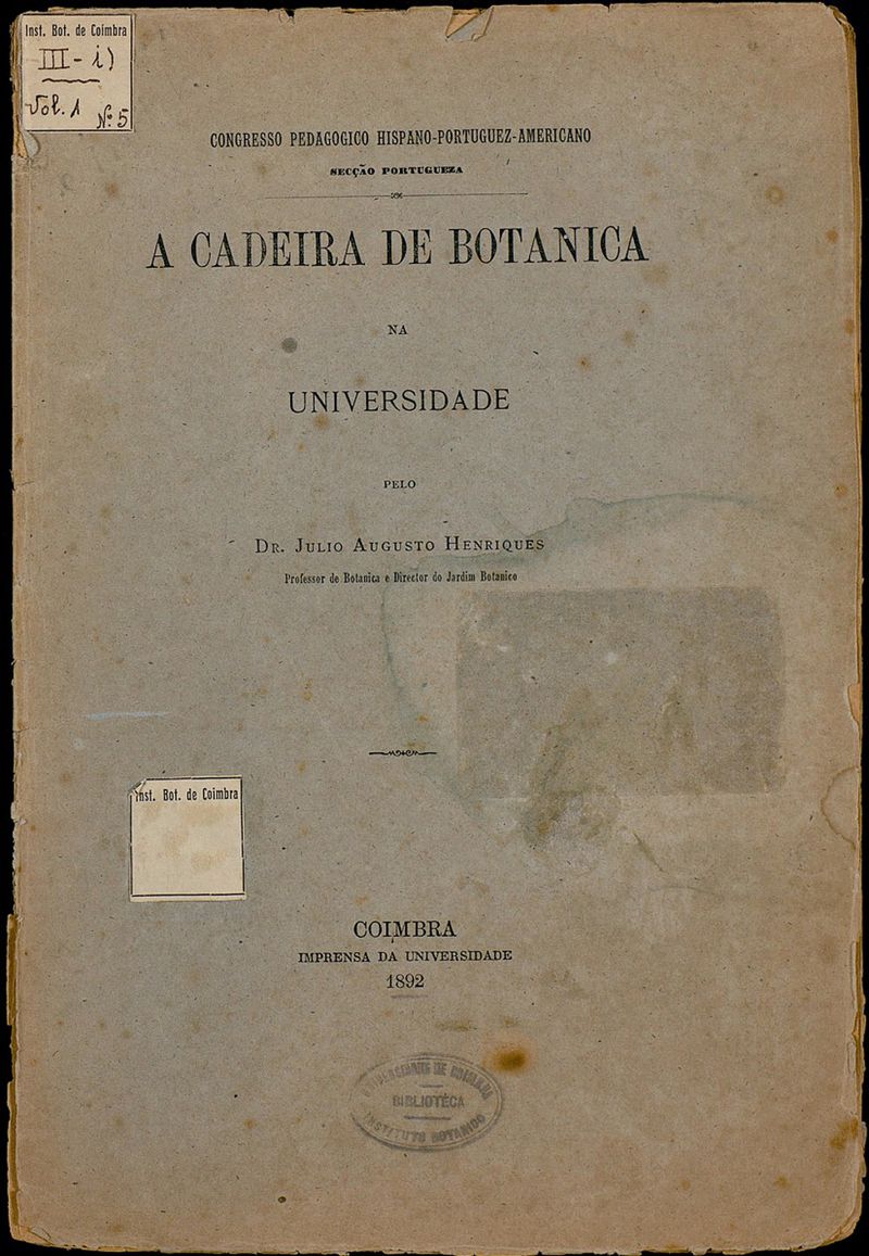 Botânica -- estudo e ensino -- Universidade de Coimbra