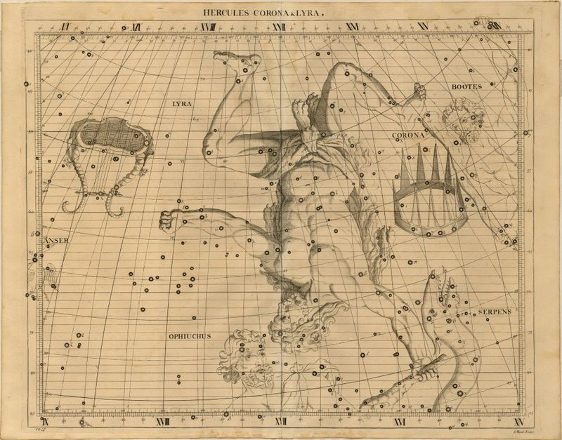 [Carta celeste Nº 21] Hercules, Corona & Lira