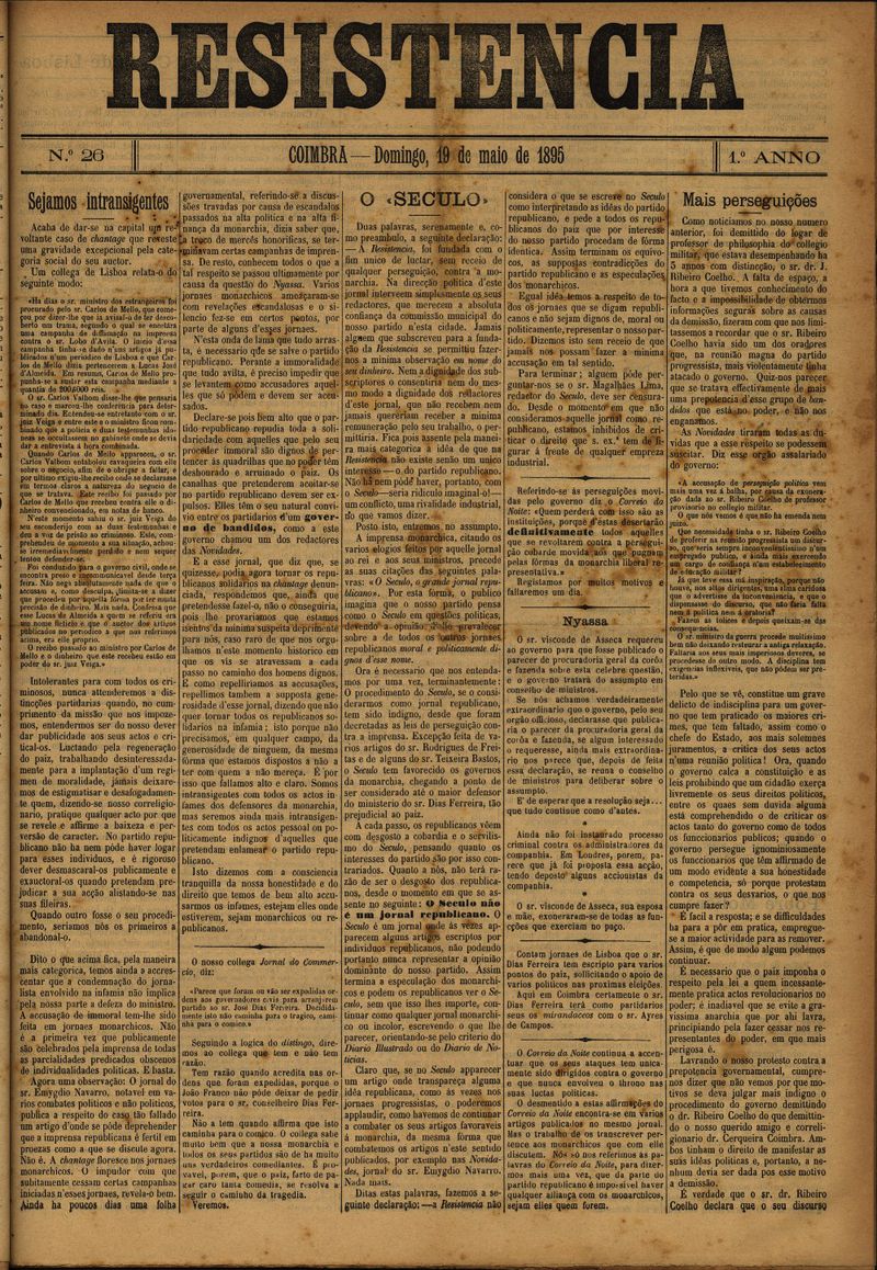 Resistência : orgão do Partido Republicano de Coimbra