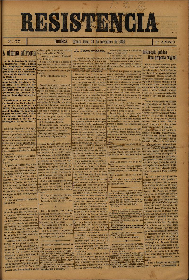 Resistência : orgão do Partido Republicano de Coimbra