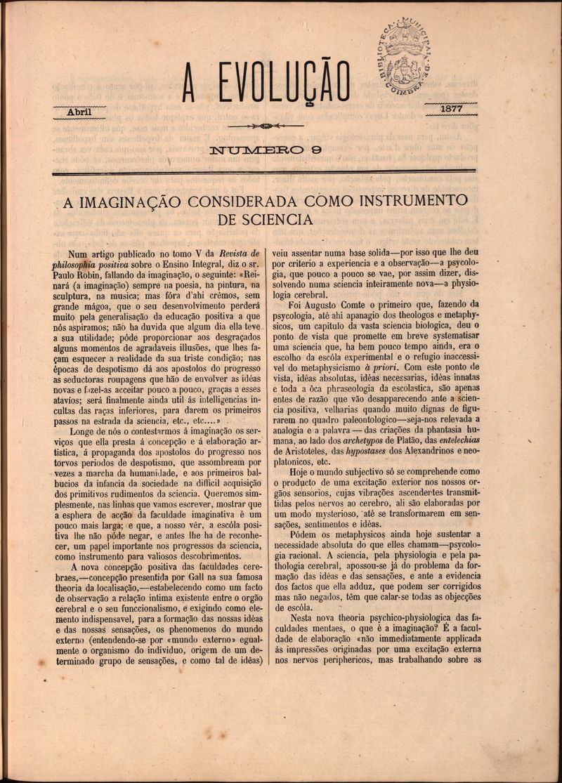 A evolução : revista quinzenal de litteratura, de critica e de vulgarisação scientifica - Nº 9