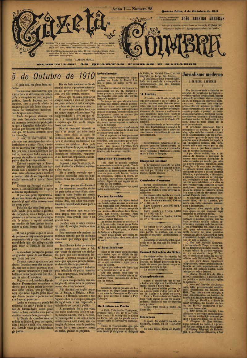 Gazeta de Coimbra 1911, Outubro 04, quarta-feira - Nº28