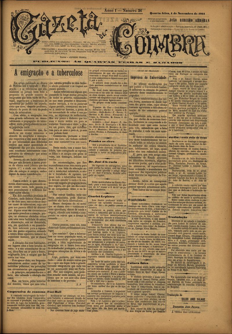 Gazeta de Coimbra 1911, Novembro 01, quarta-feira - Nº36