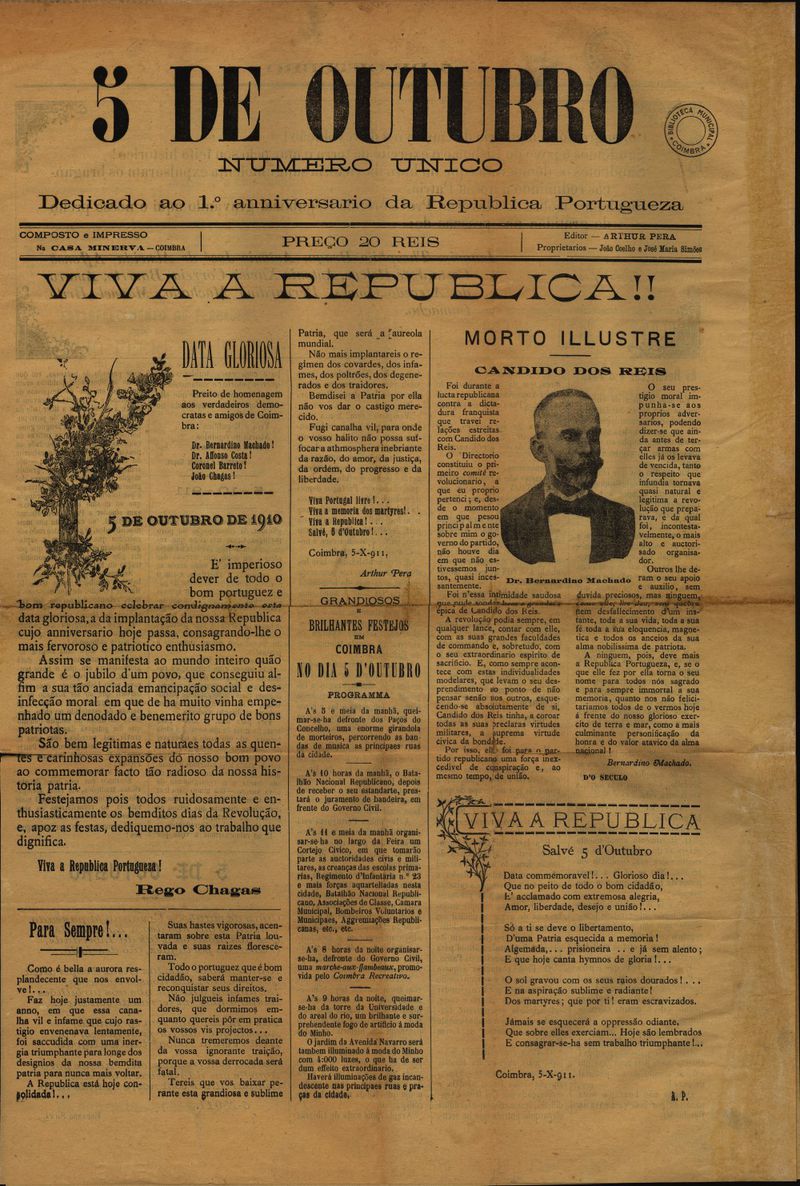 5 de Outubro : dedicado ao 1º aniversário da República Portuguesa