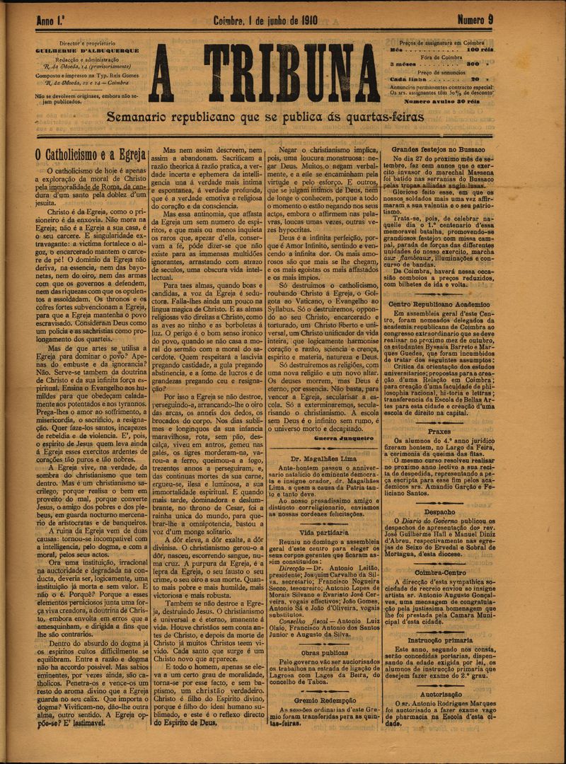 A tribuna : semanário republicano que se publica às quartas-feiras - Nº9