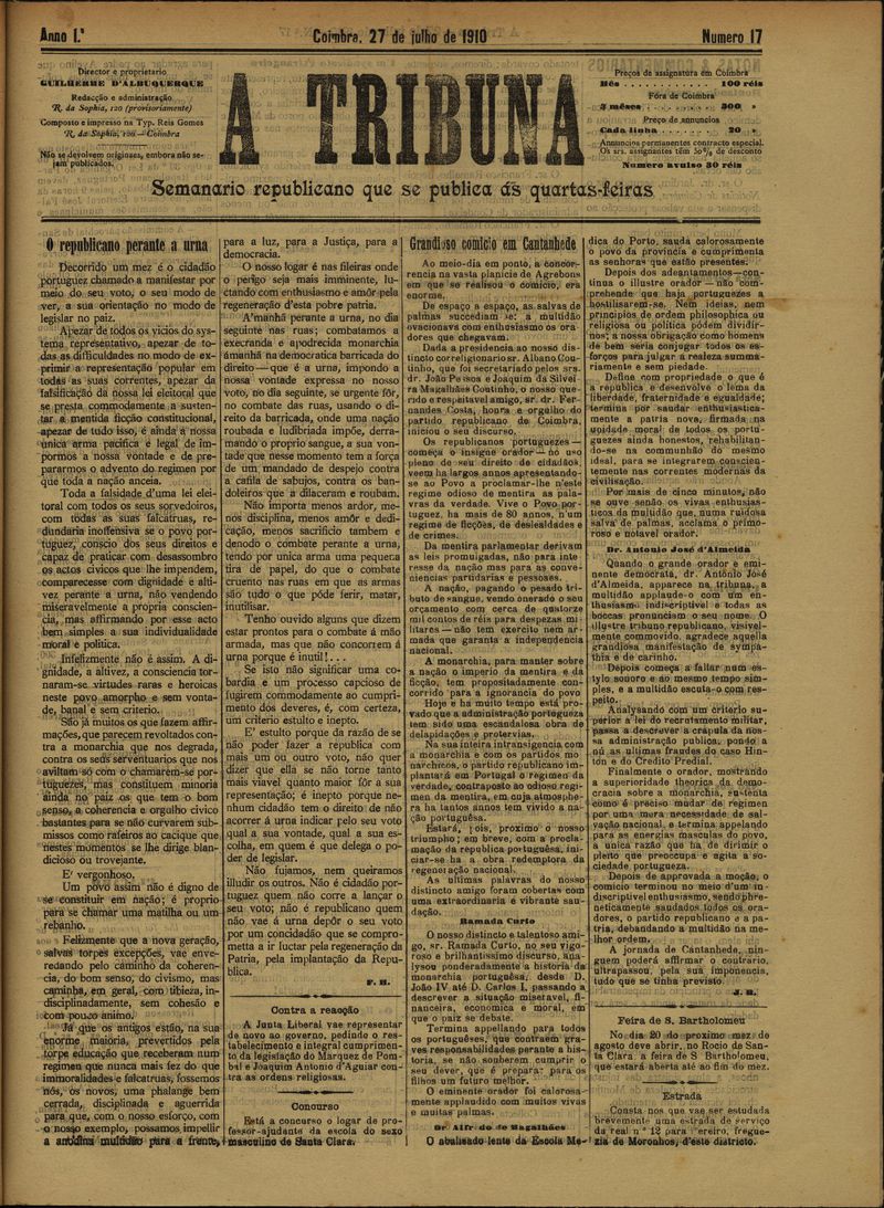 A tribuna : semanário republicano que se publica às quartas-feiras - Nº17