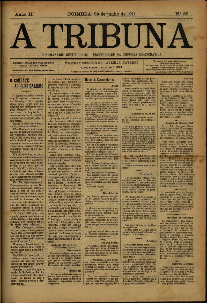 A tribuna : semanário republicano que se publica às quartas-feiras - Nº89