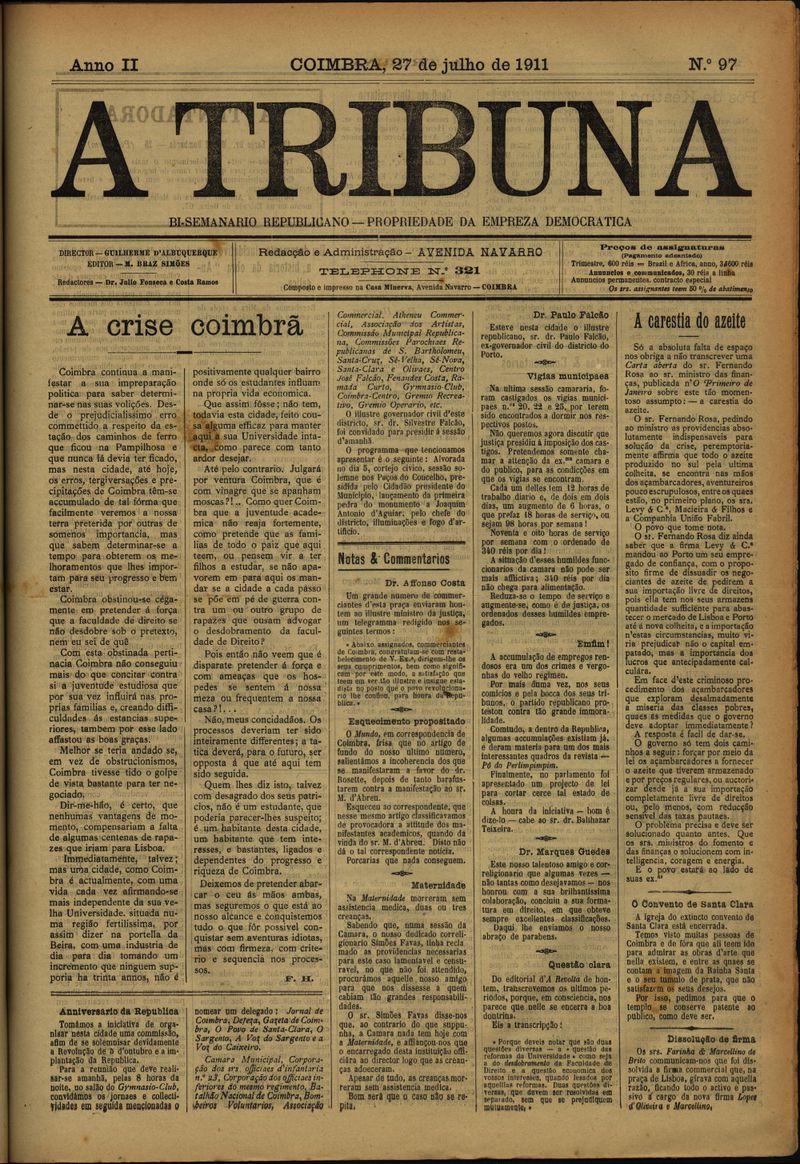 A tribuna : semanário republicano que se publica às quartas-feiras - Nº97