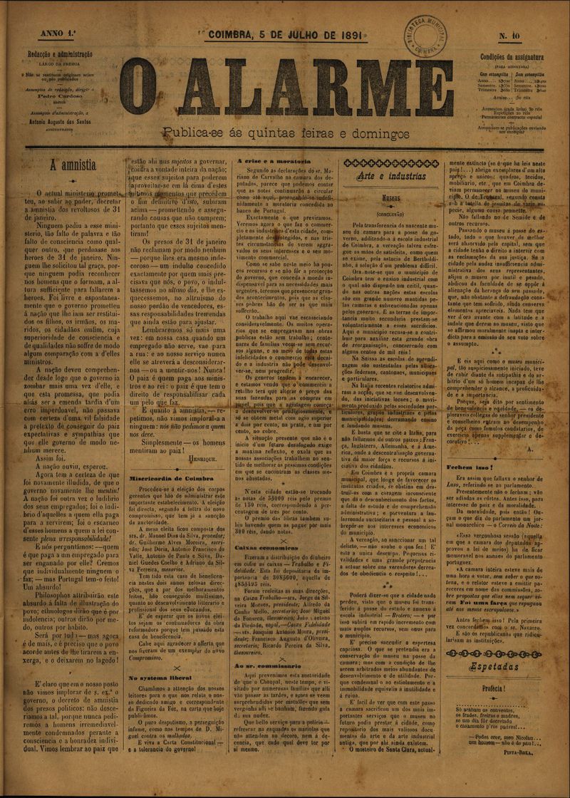O alarme - 1891, Julho 05, domingo - Nº10
