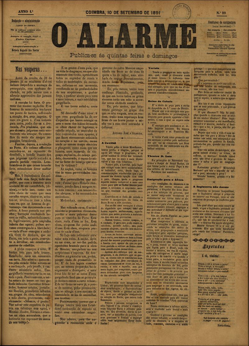 O alarme - 1891, Setembro 10, quinta-feira - Nº29