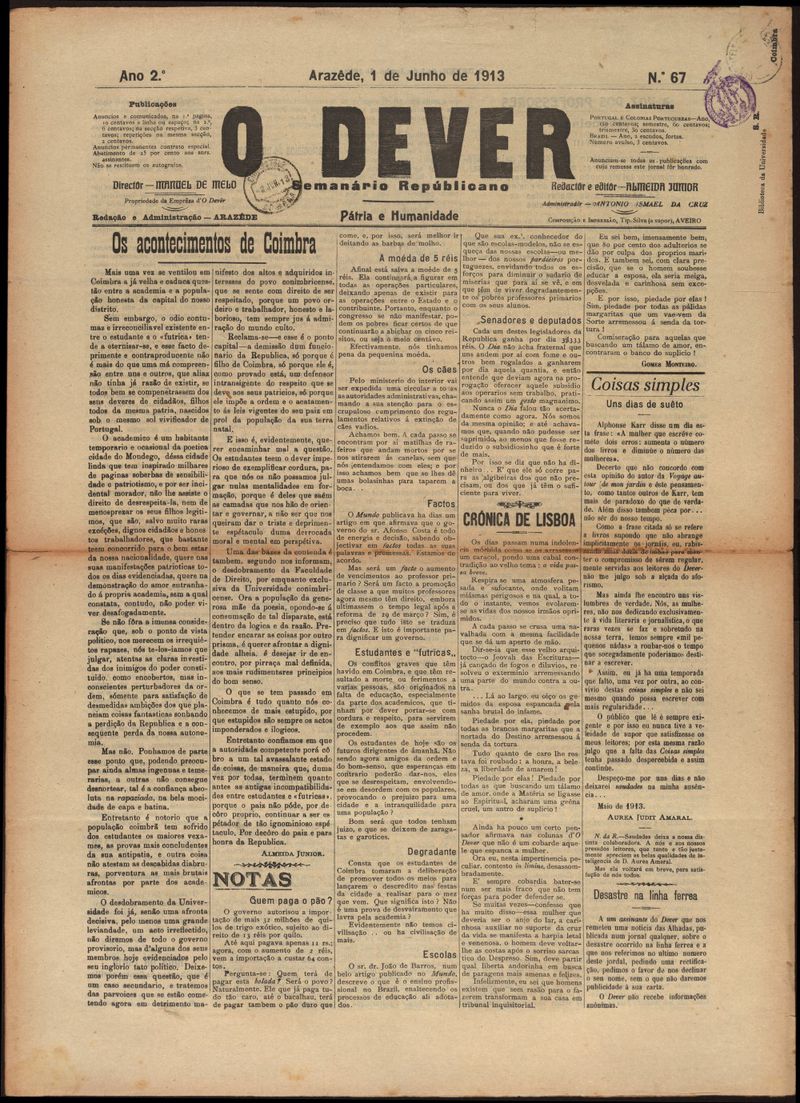 O dever : semanário republicano 1913-06-01