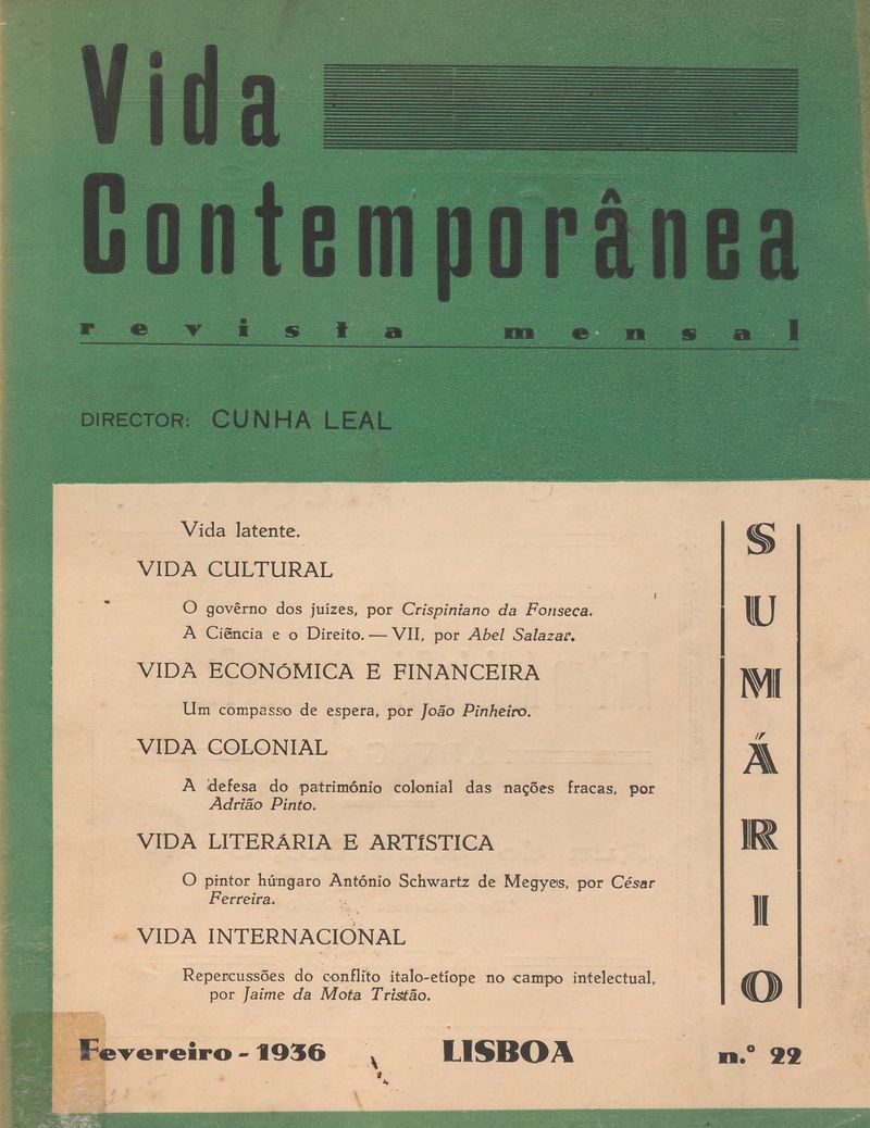 Vida contemporânea : revista mensal de estudos económicos, financeiros, sociais e literários 1936-N22